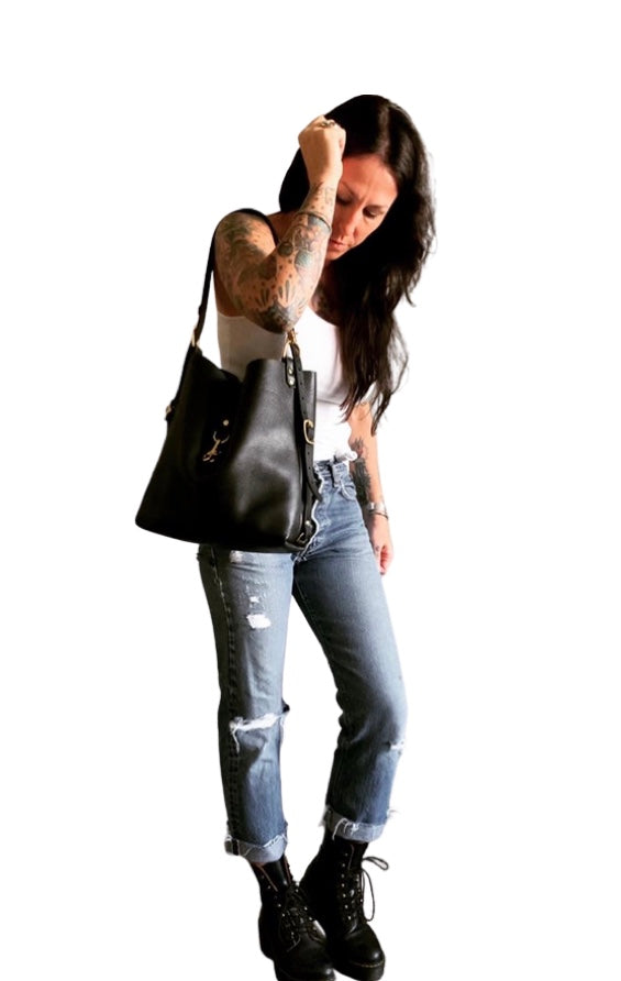 The leather that I use in my products is intended to naturally patina, show wear, and change with use and love. If you choose to protect your handbag with a spray or treatment, please be advised that it may alter the look and/or feel of your leather.