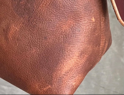 The leather that I use in my products is intended to naturally patina, show wear, and change with use and love. If you choose to protect your handbag with a spray or treatment, please be advised that it may alter the look and/or feel of your leather.